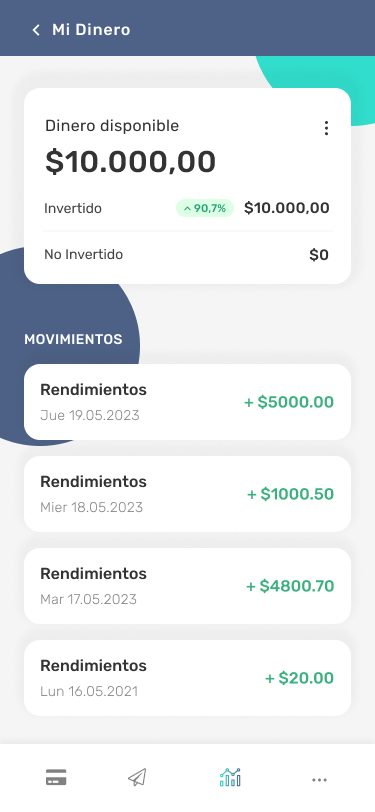 En el modelo de Inversión Automática, todo el saldo depositado por el cliente se invertirá automáticamente y estará sujeto a la Remuneración de Saldos por lo que se puede considerar agregar un Badge o Indicador en la pantalla principal con el TNA que representa la tasa de rendimiento anual estimada.
